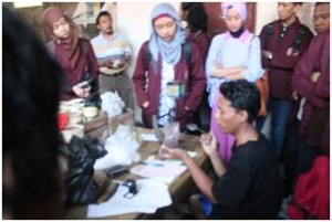 ( Menimbang bahan pewarna kain tenun )