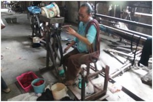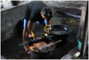 ( Tahap pertama perebusan bahan kain tenun )