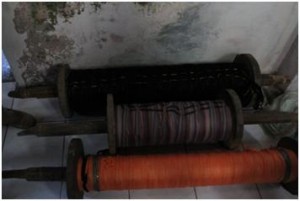 ( penggulungan bahan kain tenun dengan warna yang senada )